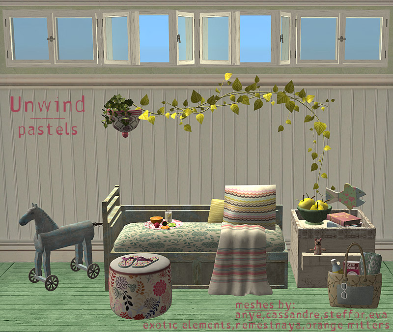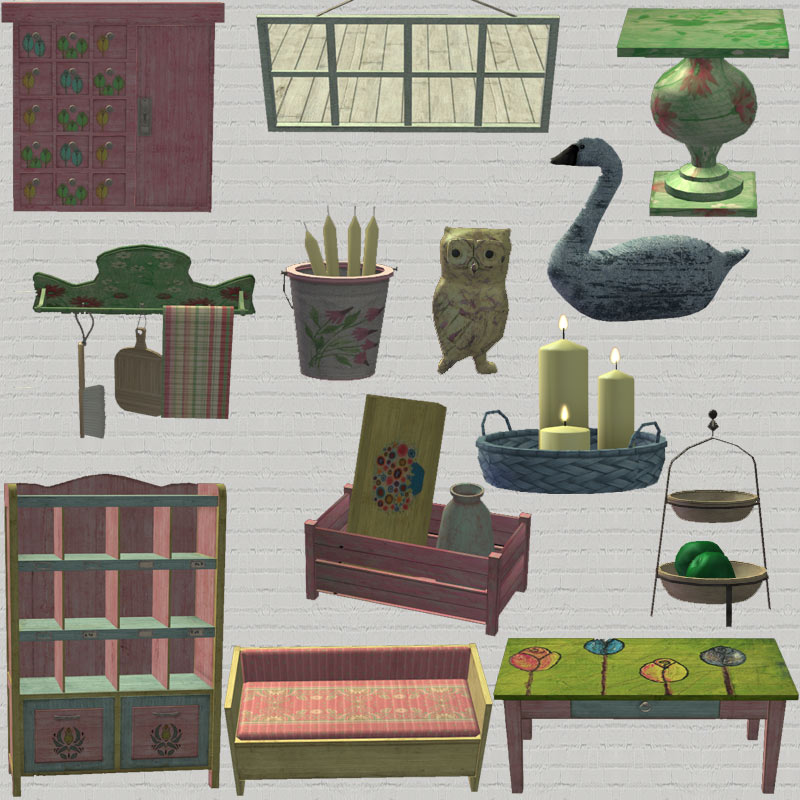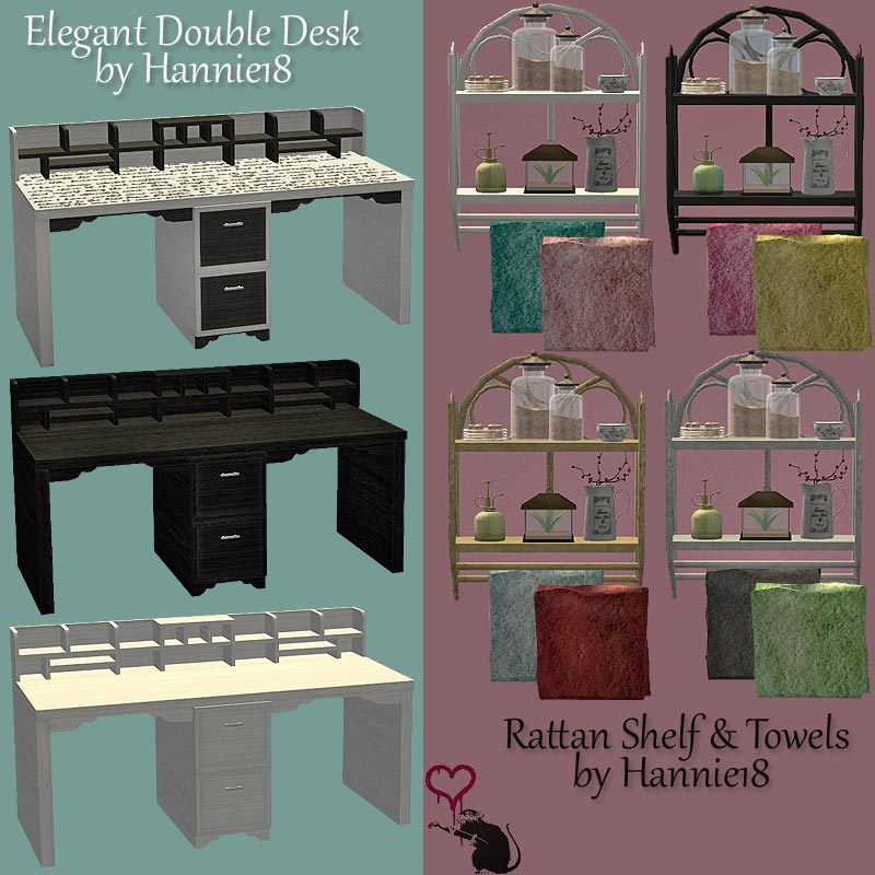 Links to original mesh uploads at Colour Sims: Desk Rattan Shelf